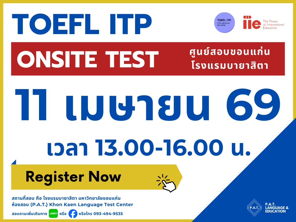 วันสอบ TOEFL ITP วันที่ 11 เมษายน 2569