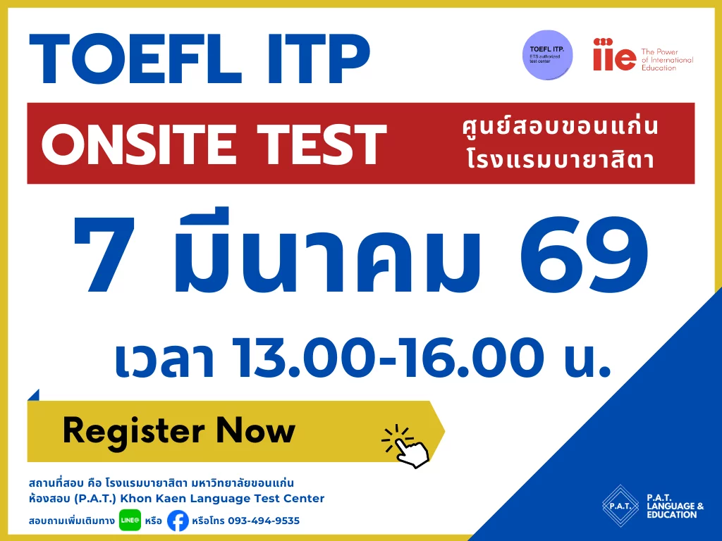 วันสอบ TOEFL ITP วันที่ 7 มีนาคม 2569