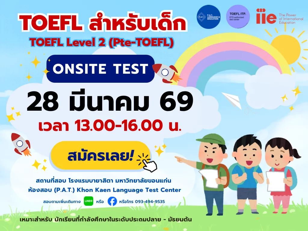 รอบสอบ TOEFL ITP วันที่ 28 มีนาคม 69